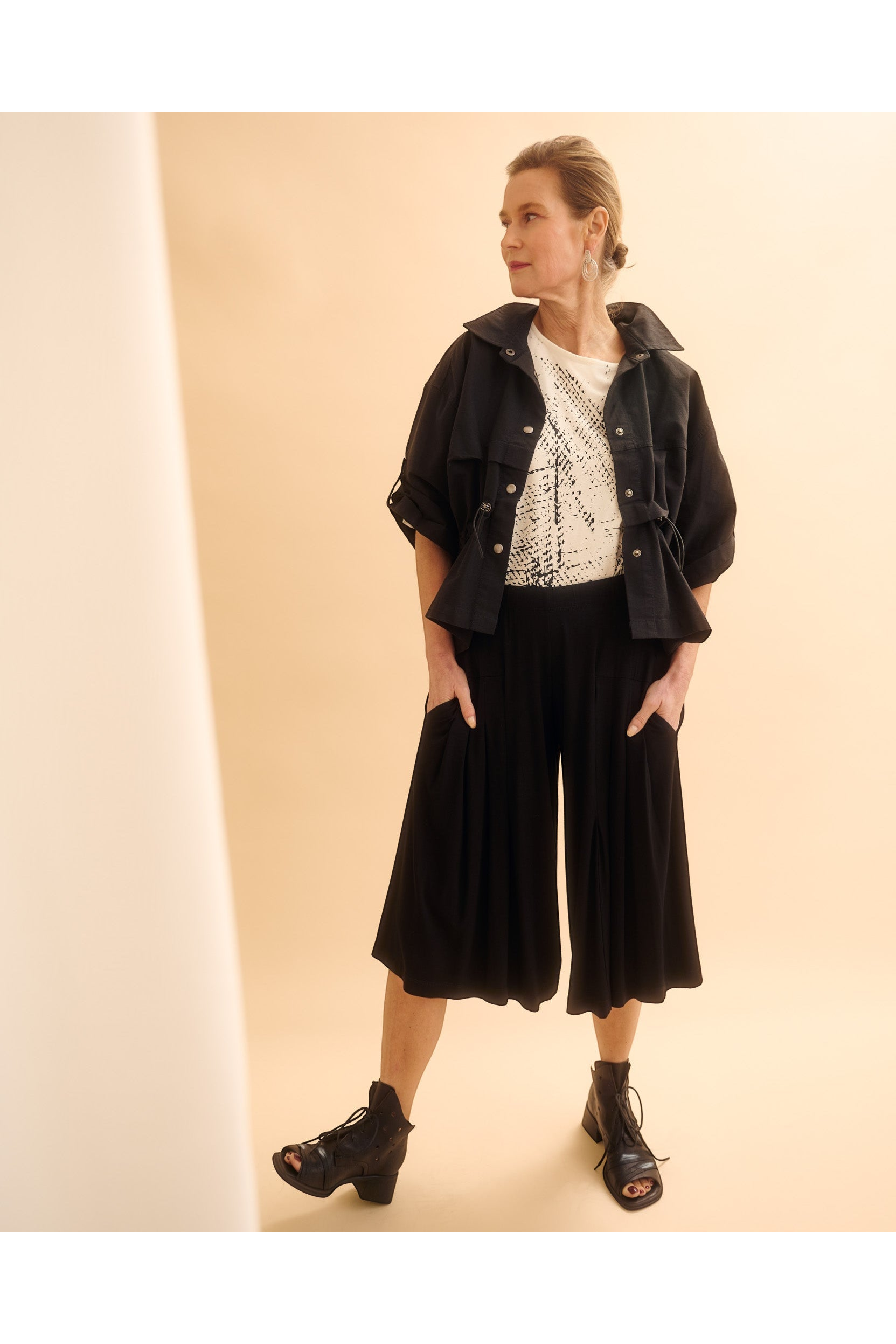 Bermuda FUNDIS uit de kleding collectie van OZAI N KÜ. Wijd en comfortabel model broek tot op de knie.