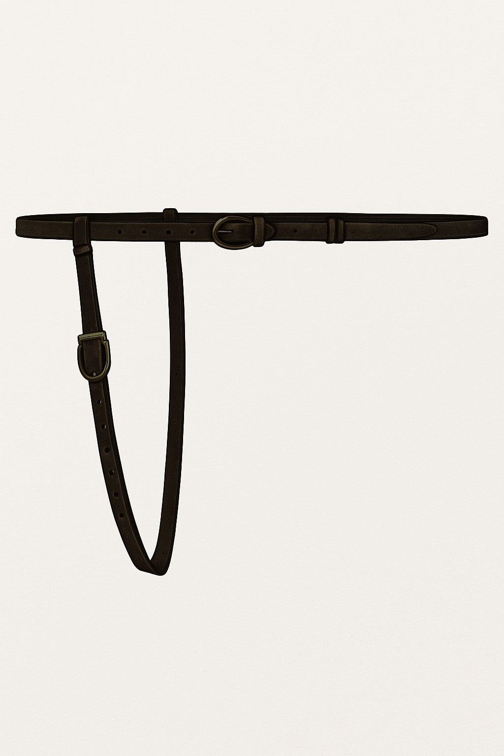 Ceintuur RIDE uit de kleding collectie van ELSEWHERE FASHION. Dunne ceintuur met extra band die je zowel over de schouder als loshangend kunt dragen.