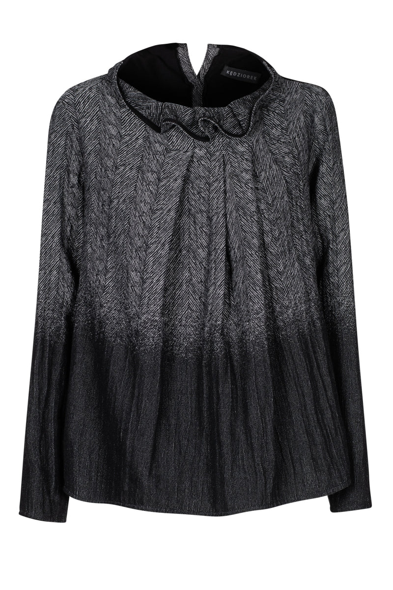 Top uit de kleding collectie van KEDZIOREK. Uitlopend model met opvallende kraag en asymmetrische plooidetails op het voorpand. De top sluit op het achterpand met knoopjes en heeft lange mouwen.