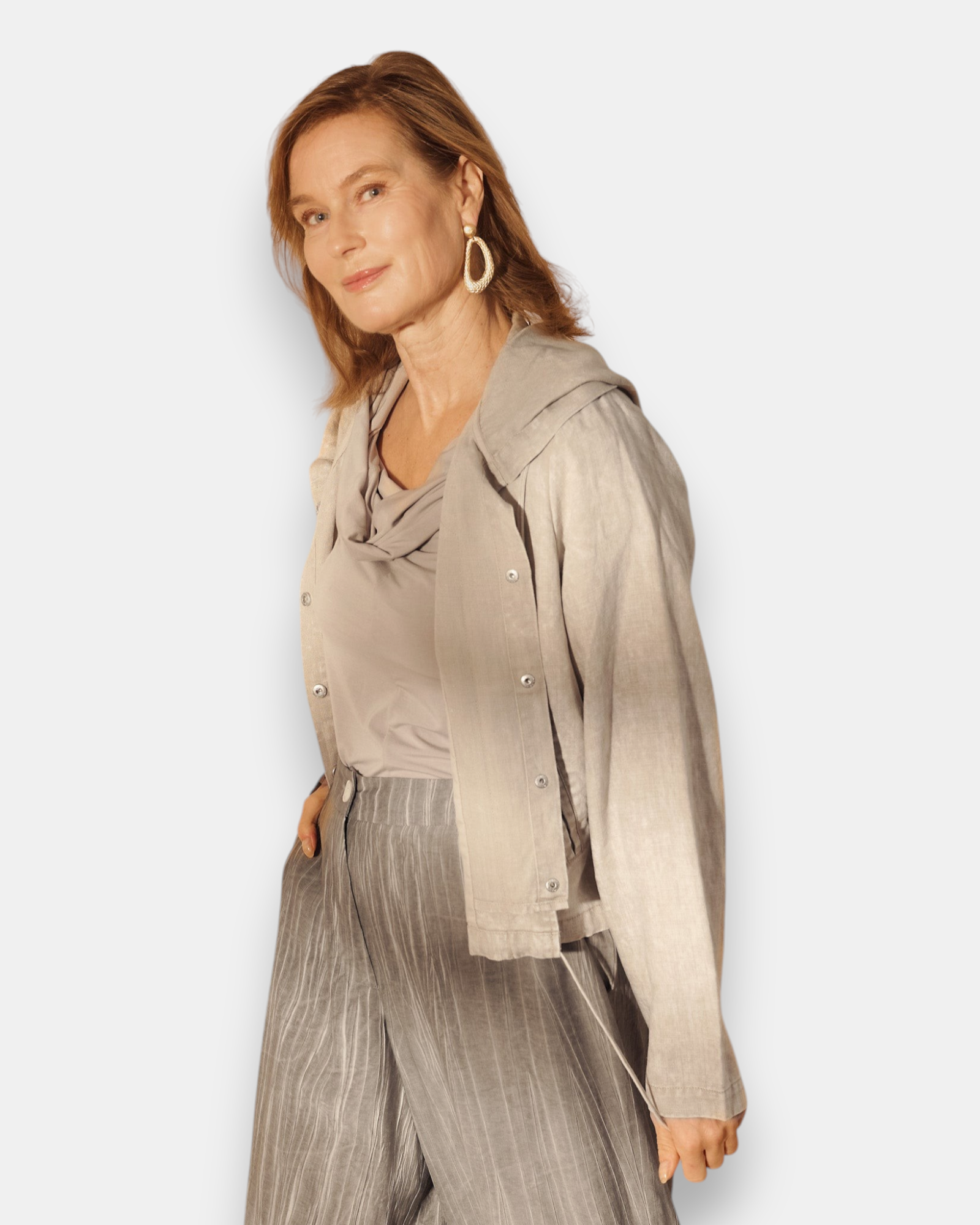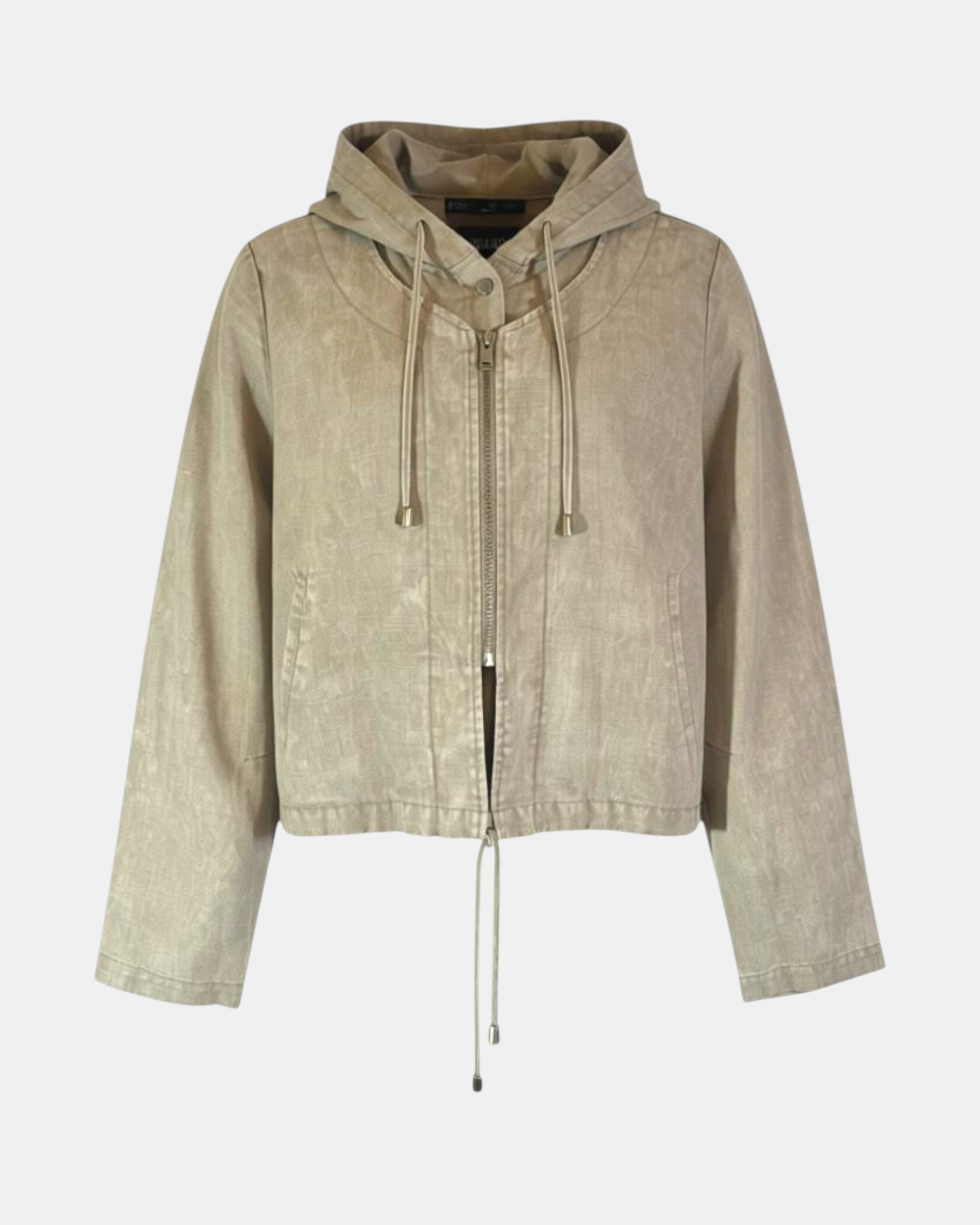 AMBER & MOON jasje CLARA uit de kleding collectie van AMBER & MOON. Boxy model jasje met dubbele sluiting en een capuchon.