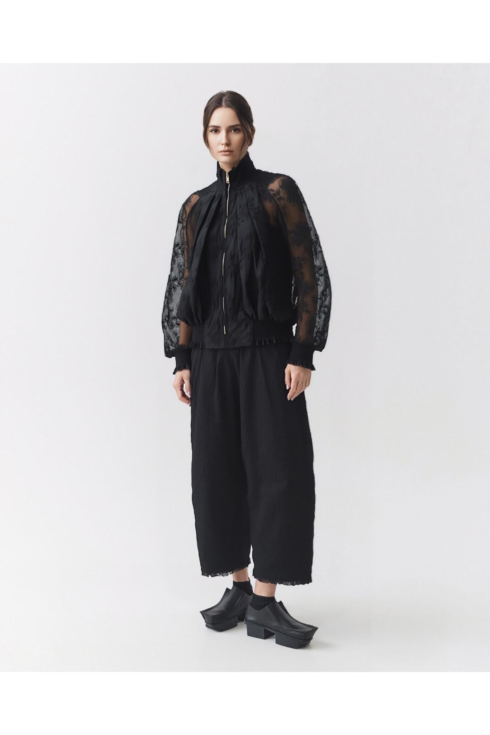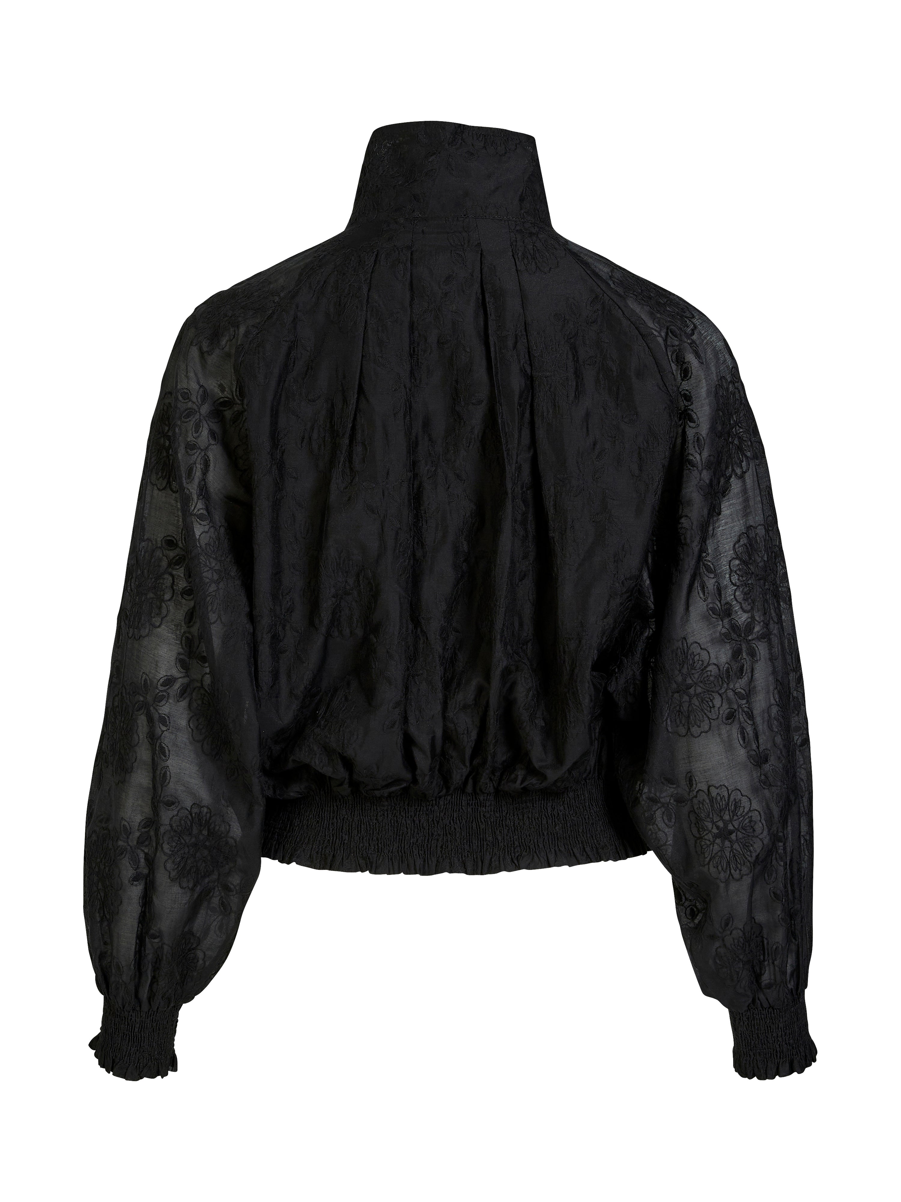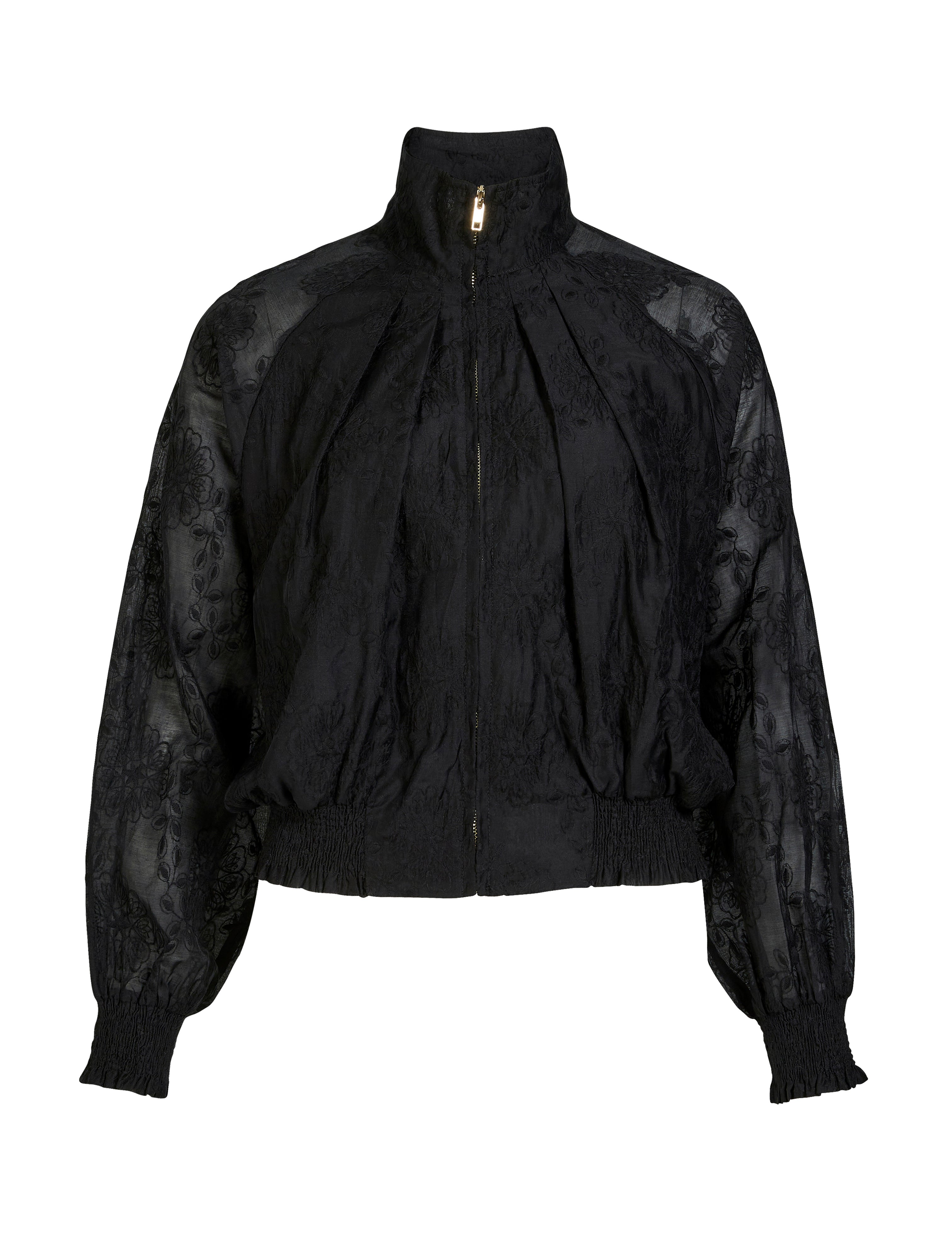 Kort jasje BIRDY uit de kleding collectie van NÜ DENMARK. Kort model jasje met ritssluiting en opstaande kraag. De mouwen zijn transparant.