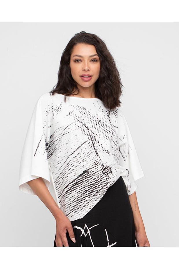 Top FAVIA uit de kleding collectie van OZAI N KÜ. Oversized model top met boothals en wijde aangeknopte mouwen tot op de elleboog