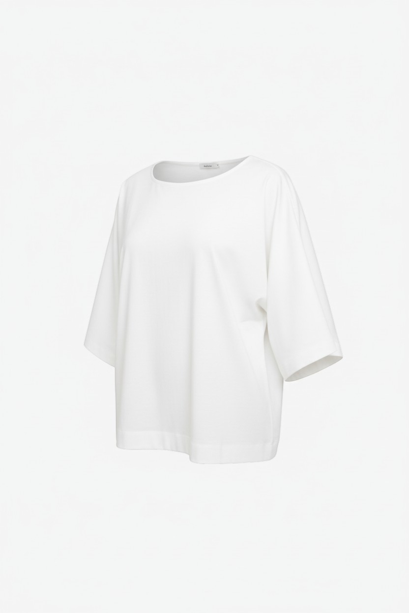 Top FRESCO uit de kleding collectie van OZAI N KÜ. Oversized model top met ronde hals en wijde aangeknipte mouwen tot op de elleboog