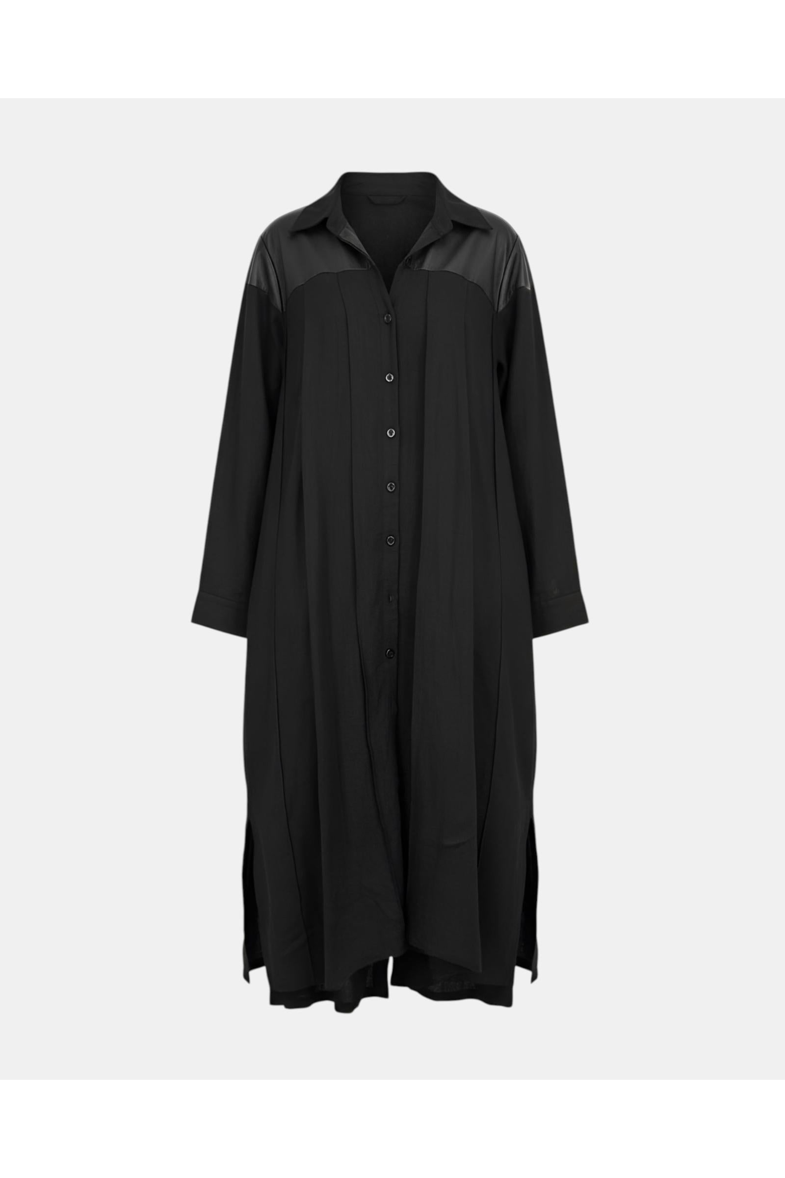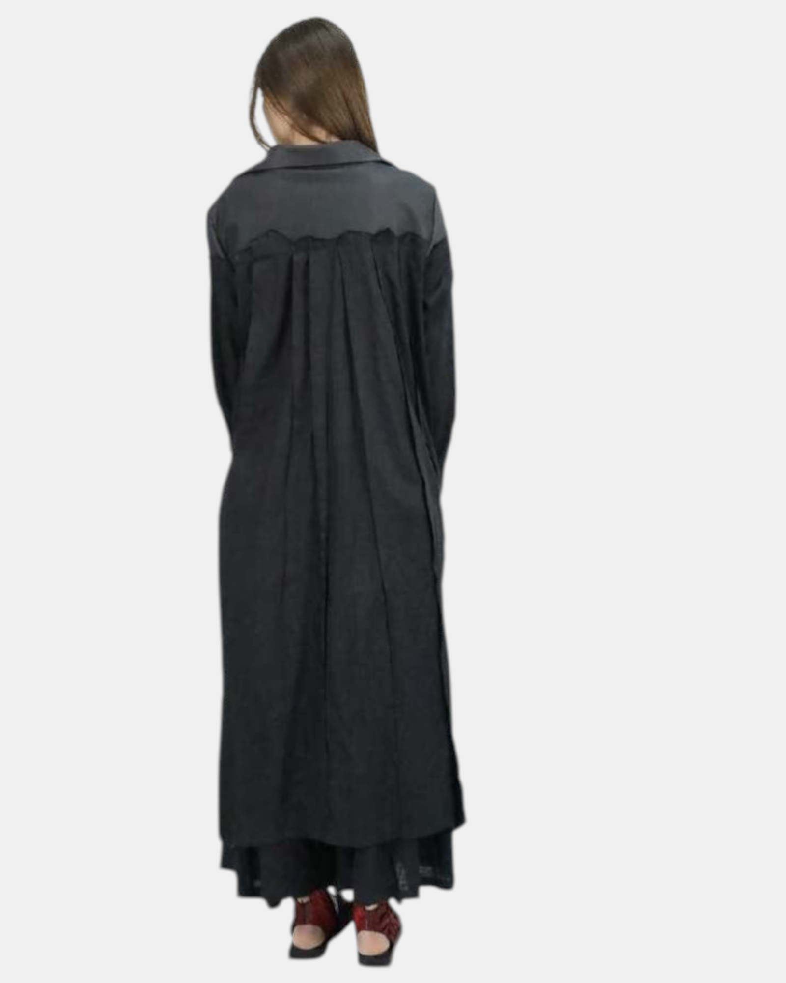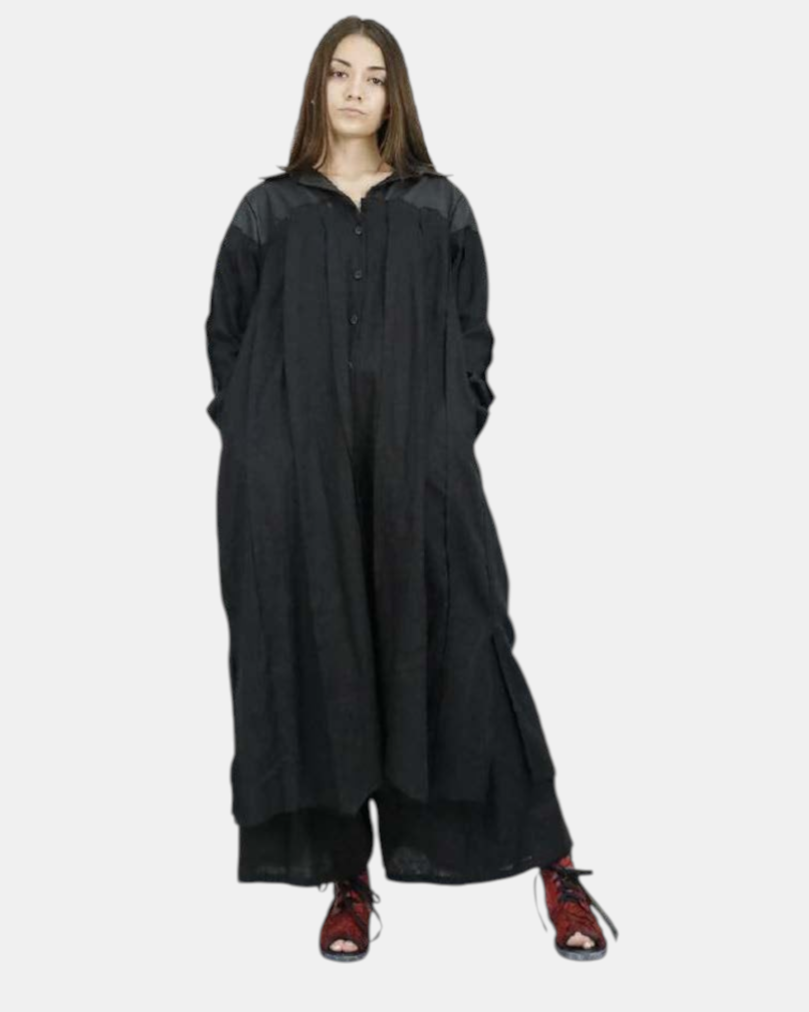 Lange blouse FRESH BREEZEVALE uit de kleding collectie van PAPUCEI. Recht model met lange mouwen en een knoopsluiting. De blouse heeft een lederen pas waarbij het linnen aan de buitenzijde is aangezet met brede doorgestikte platte plooien.