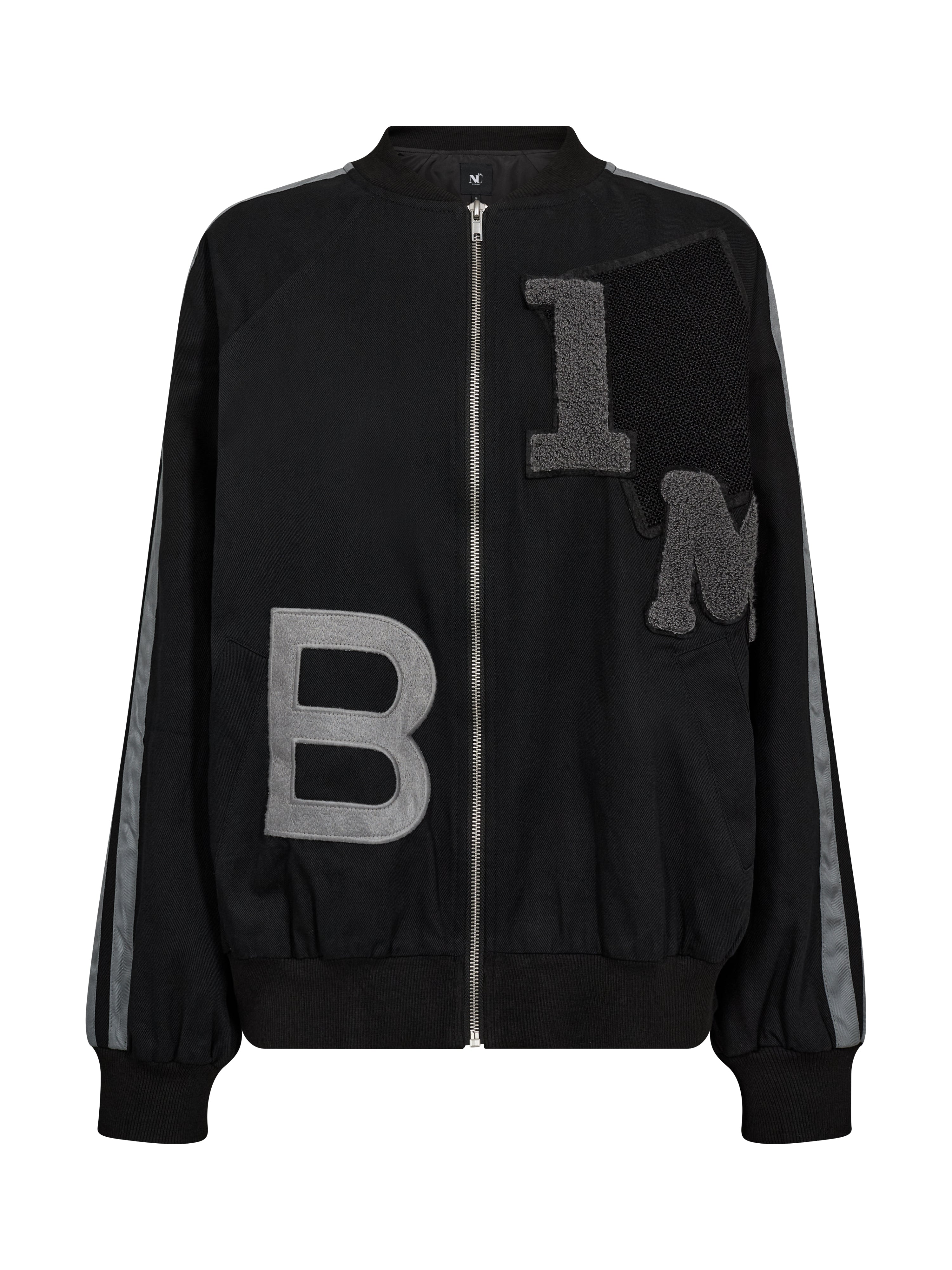 Jas ASTON uit de kleding collectie van NÜ Denmark. Bomber model jas met brede ribboord aan de mouwen en aan de onderzoom. Diverse applicaties geven de jas een stoere uitstraling.