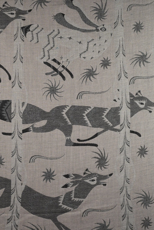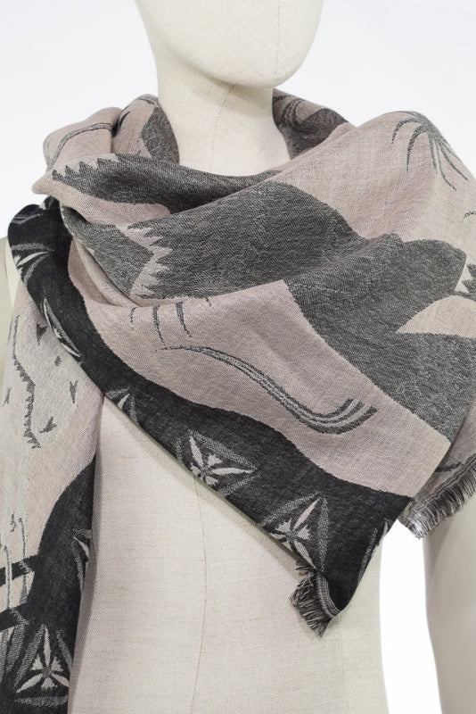 Wollen sjaal van AHMADDY met een abstract dessin van vossen.