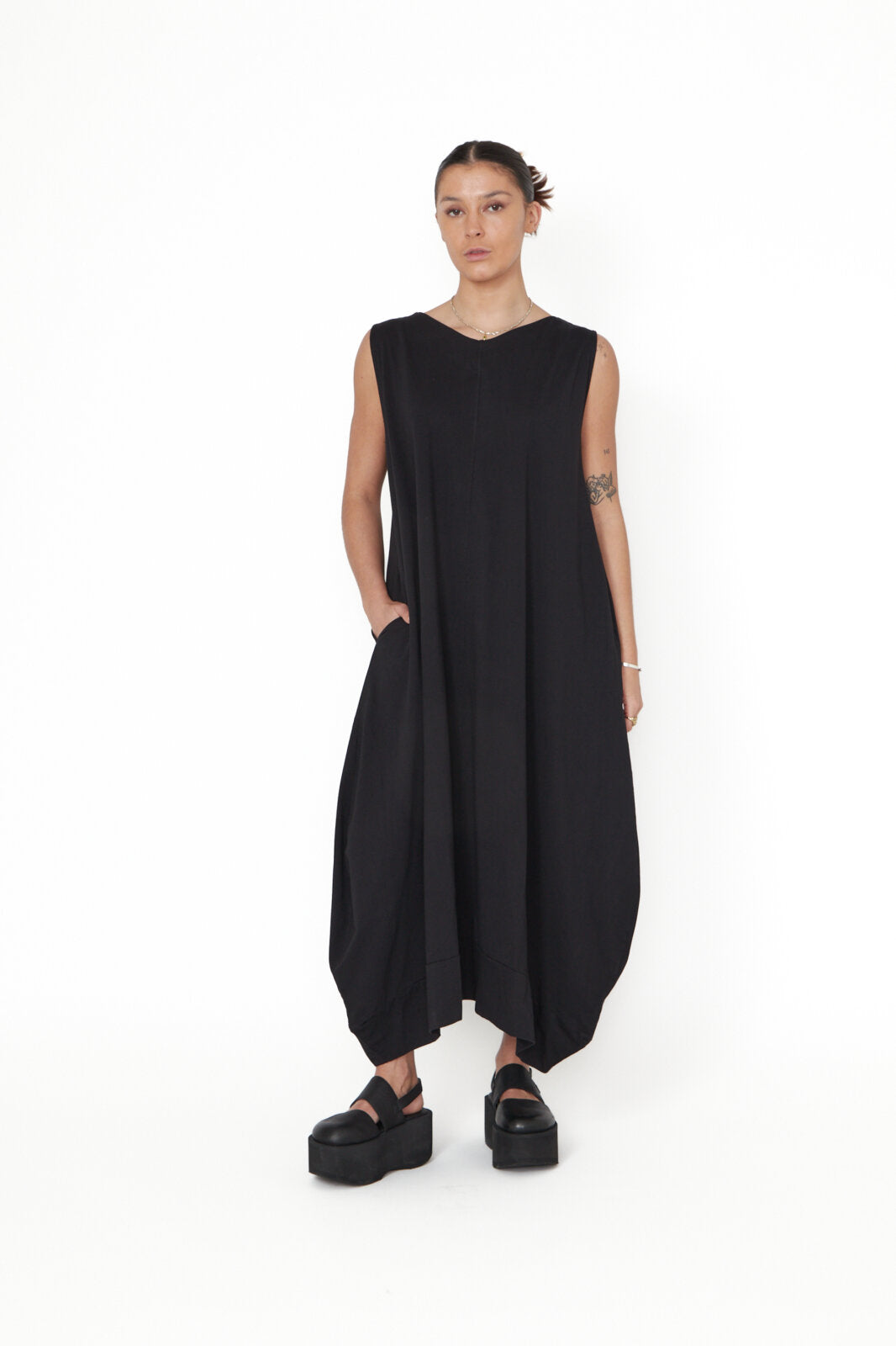 Jurk BRENT uit de kleding collectie van SORT AARHUS. Tulp model jurk met ronde hals. Mouwloos.
