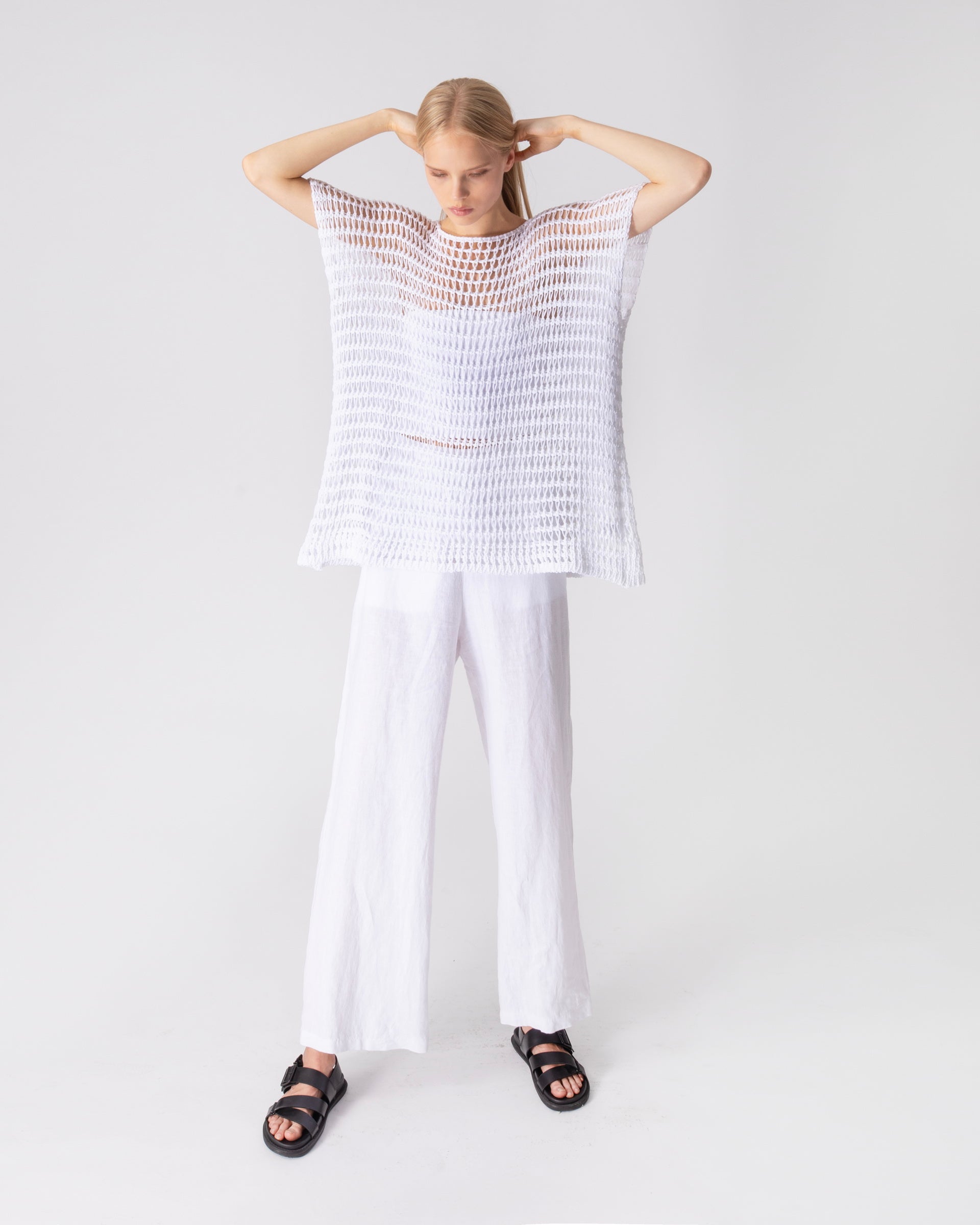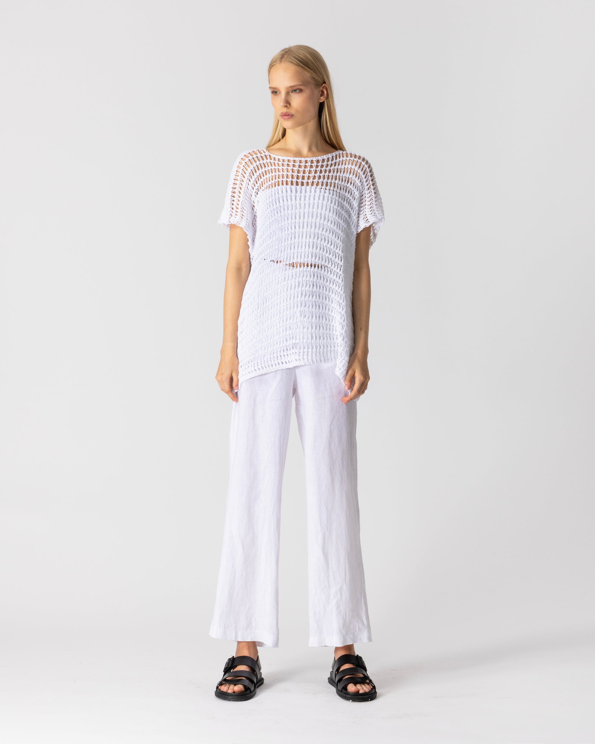 Top EDIS uit de kleding collectie van LOTUS EATERS. Rechte top met ronde hals en kapmouwen.