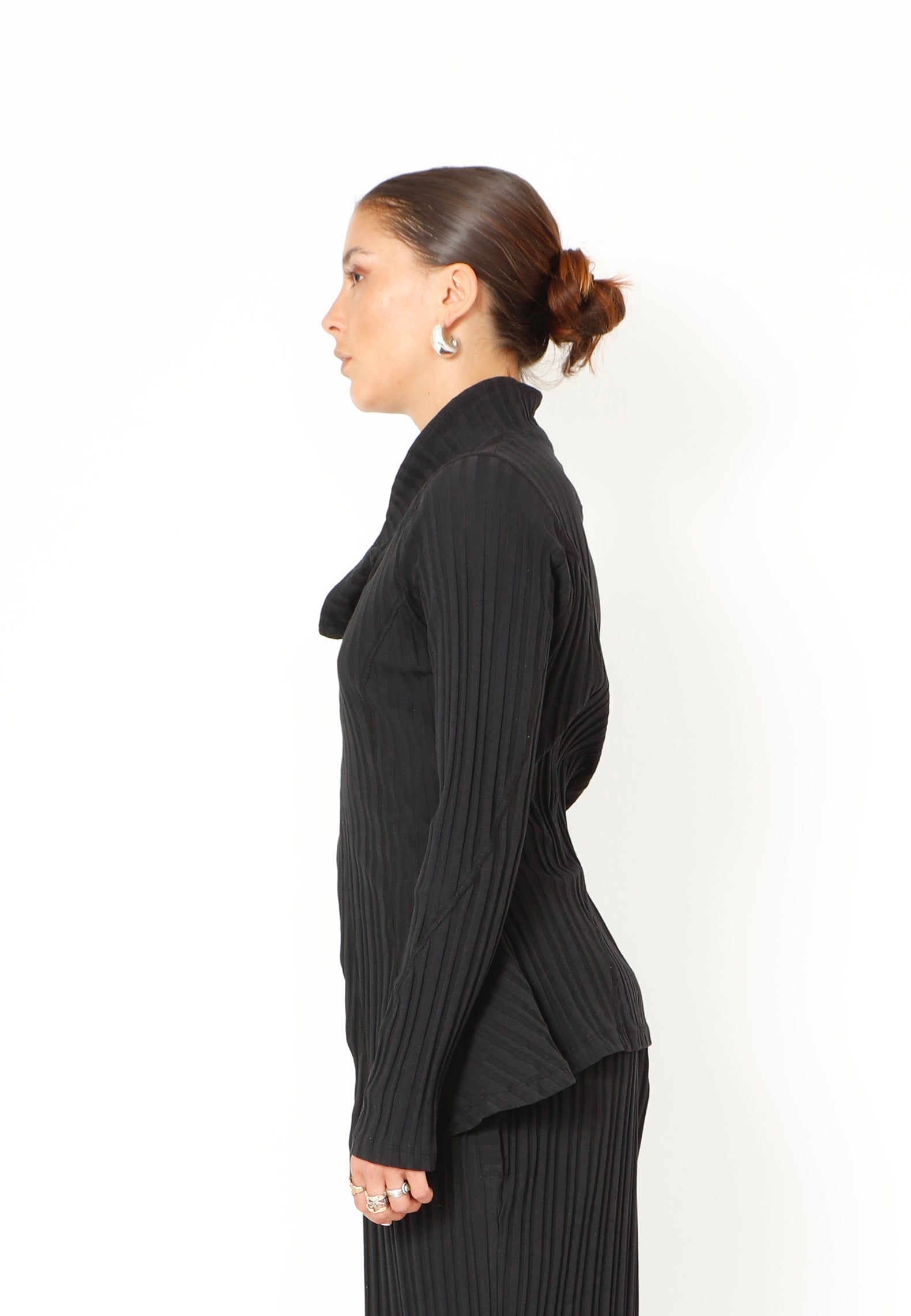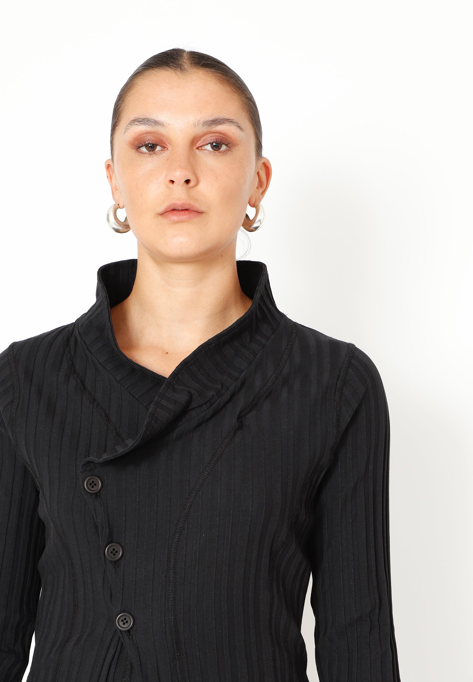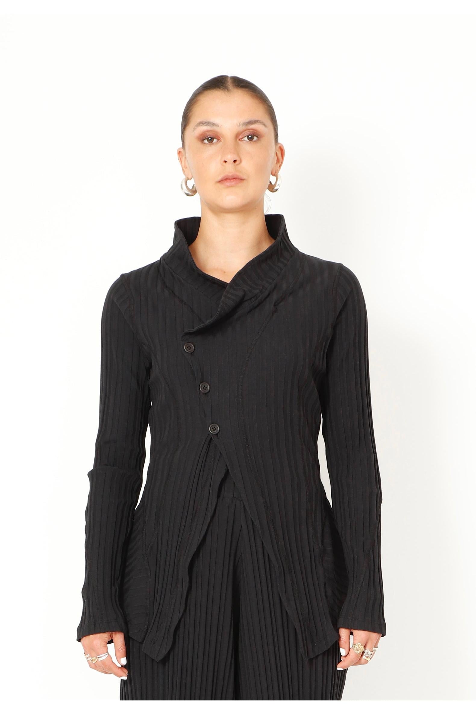 Jacke BELLIS aus der Bekleidungskollektion von Sort AARHUS. Bequeme Jacke mit asymmetrischem Verschluss.