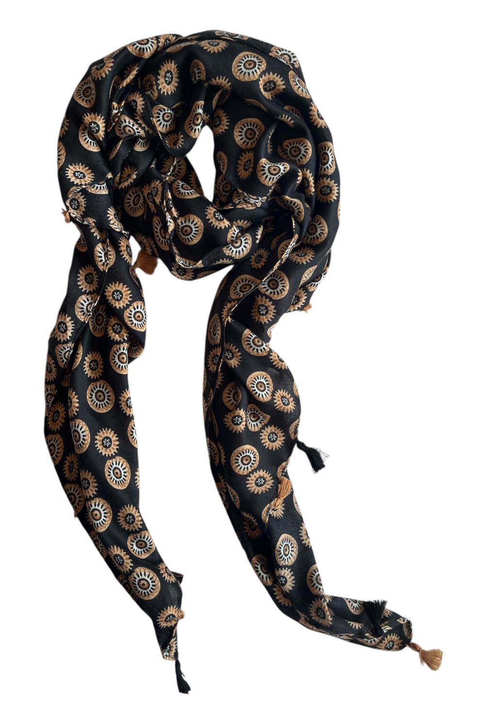 Schal mit Print in Schwarz und Camel mit Quasten.