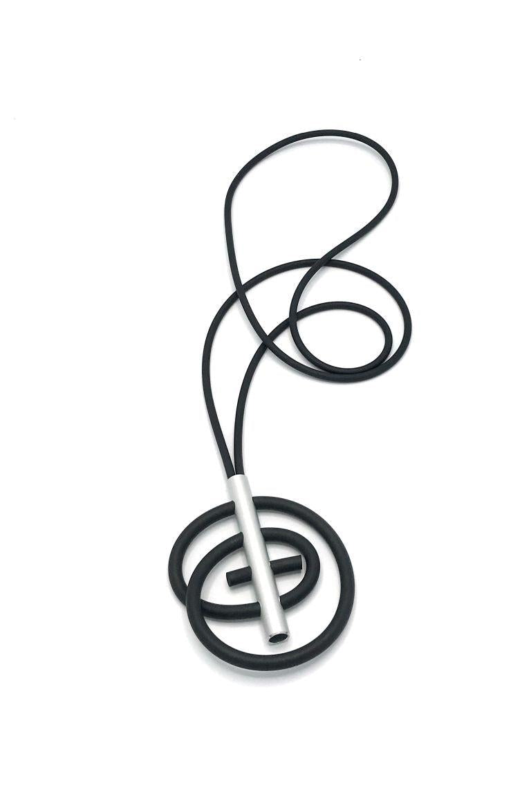 Kette aus der Schmuckkollektion von AnZZ. Die Kette hat ein langes Aluminiumelement. Die Kette kann leicht selbst gekürzt werden.