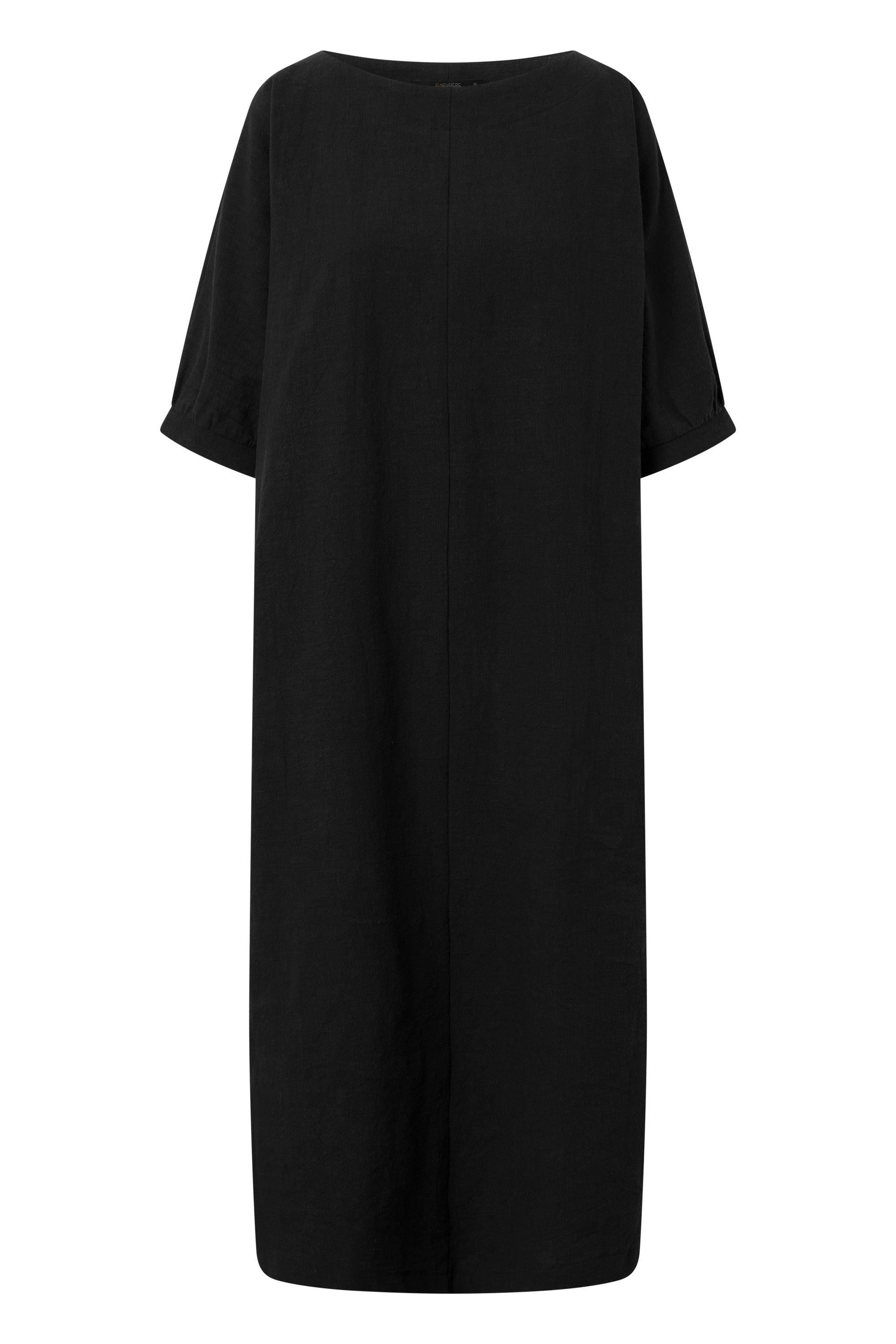 Kleid KARKILLA aus der Bekleidungskollektion von ELSEWHERE Fashion. Stilvolles, gerade geschnittenes Kleid. Das Kleid hat einen runden Ausschnitt und kurze Ärmel mit Bündchen. Durch die kurzen Ärmel lässt sich das Kleid schön mit einer Bluse mit langen Ärmeln darunter kombinieren. Du kannst das Kleid bei Bedarf mit einem Gürtel taillieren.
