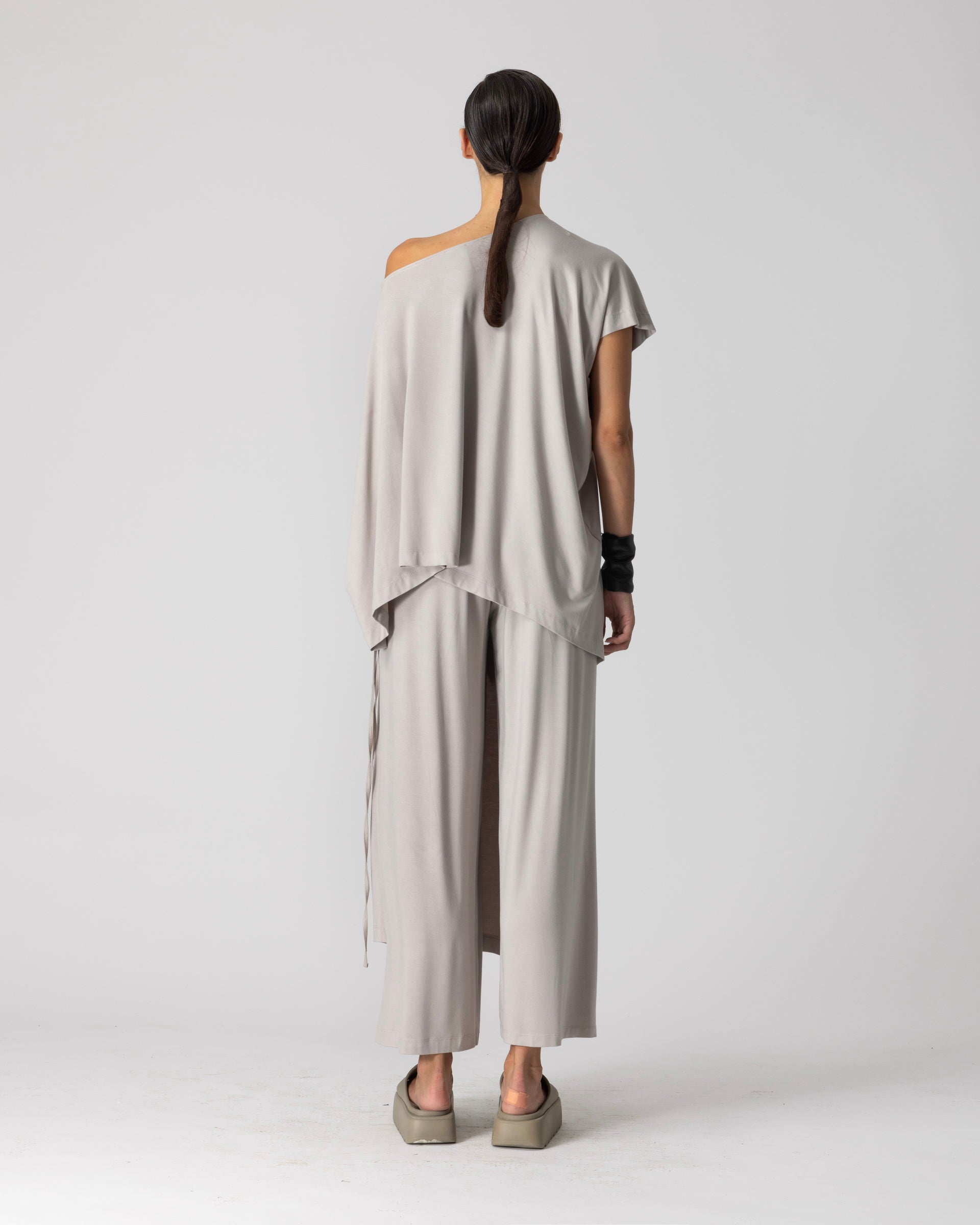 Top ONAR uit de kleding collectie van LOTUS EATERS. Oversized model met een kapmouw aan een kant en een brede open mouw aan de andere kant. Dmv het bandje kun je de top oop verschillende manieren stylen.