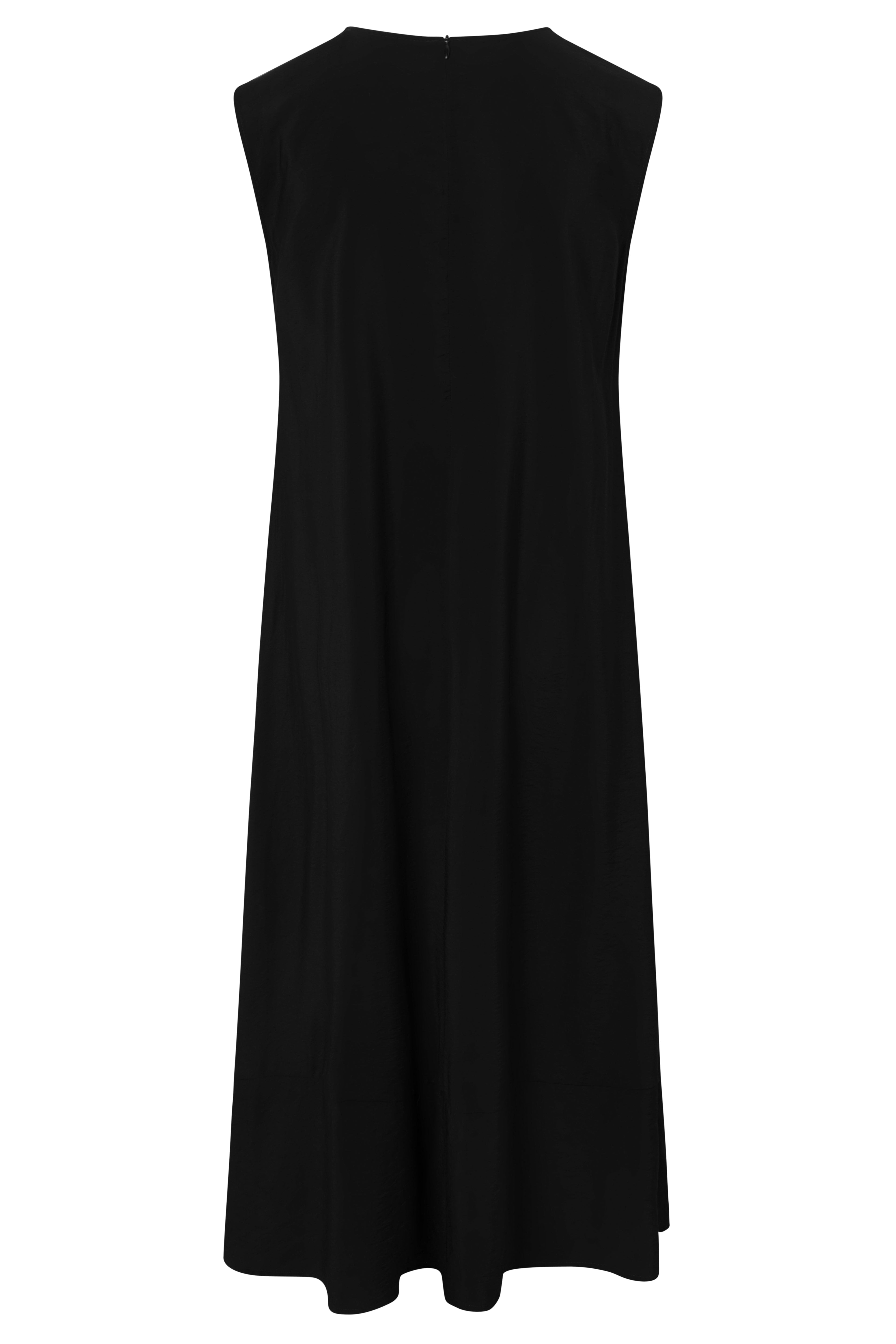 Jurk CULLINAN uit de kleding collectie van ELSEWHERE Fashion. Een zwarte jurk die niet in je kledingkast mag ontbreken. De jurk heeft een licht uitlopend model en V-hals. De jurk is mouwloos, waardoor je deze echt voor alle gelegenheden kunt stylen. Zonder iets voor een zomerse dag, met een transparante lange mouw eronder voor een feestje of met een mooi jasje erover voor een gelegenheid. Kortom, een allemansvriend!