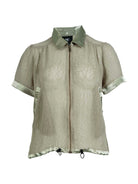 Blouse jasje ZAZIA uit de kleding collectie van NÜ DENMARK. Korte blouse met ritssluiting en koord met stopper in de zoom. Ook leuk om open als jasje te dragen. De top heeft korte mouwen, twee steekzakken en een overhemdskraag.