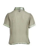 Gemaakt van soepele en licht transparante viscose-katoenmix. De kraag en de boord aan de mouwen zijn van glanzende satijn.