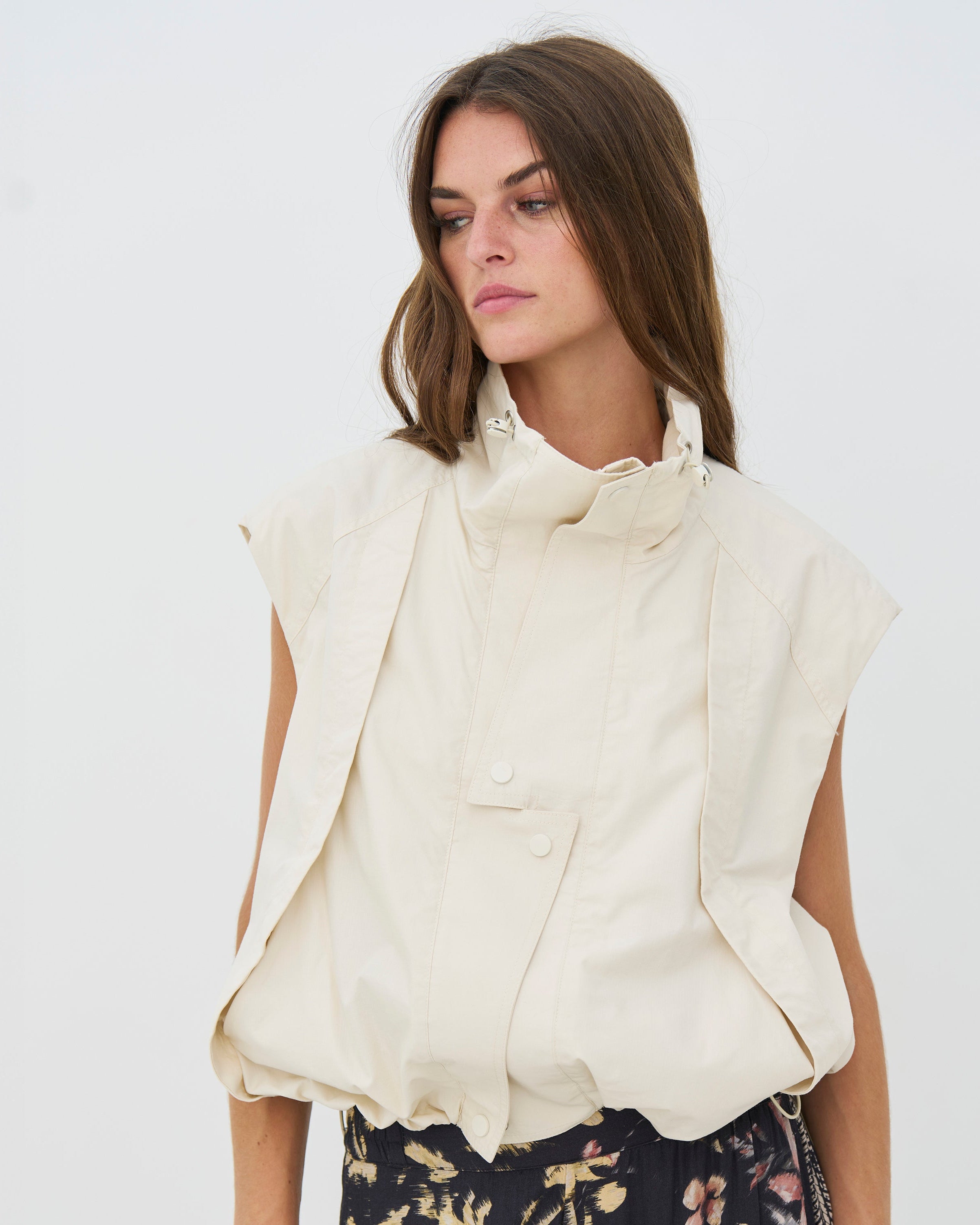 - Opstaande kraag met aantrekkoord