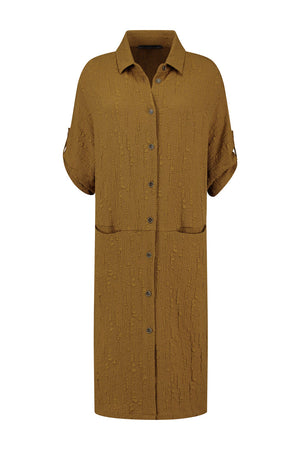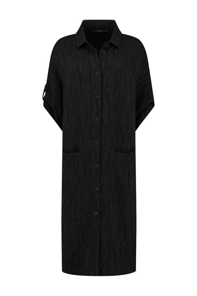 Lange Bluse von ELSEWHERE Fashion. Button-Down-Hemd mit zwei aufgesetzten Taschen. Verkürzte Ärmel, die mit einer Schlaufe hochgezogen werden können. Die Bluse kann auch als Kleid getragen werden.